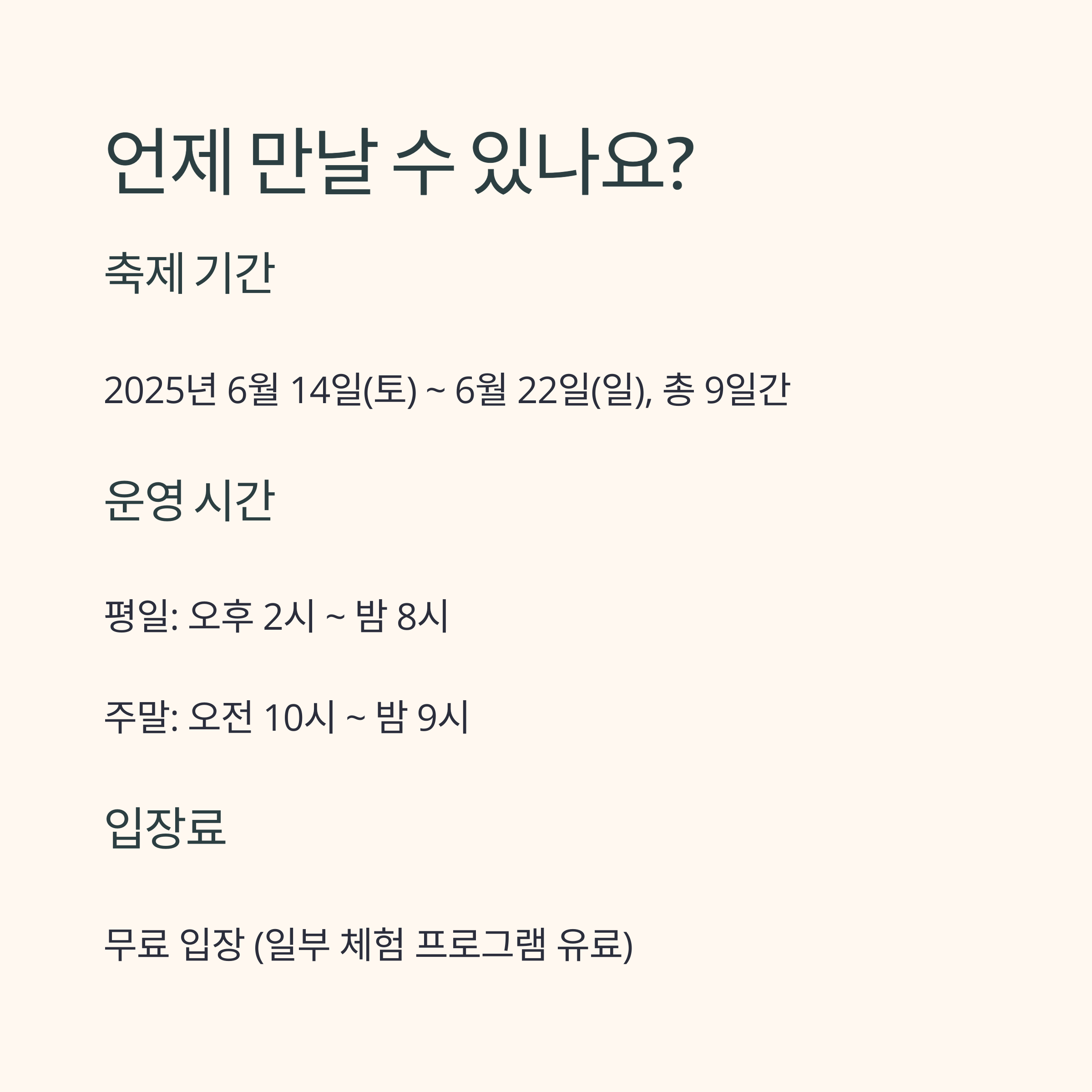 - 기간: 2025년 6월 14일(토) ~ 6월 22일(일), 9일간