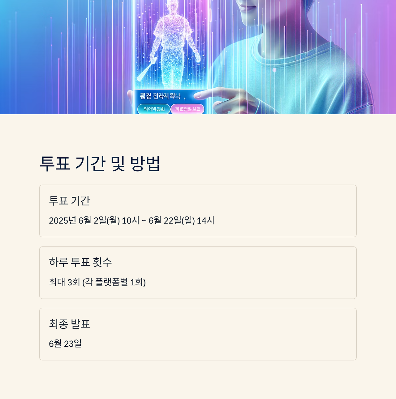 - 투표 기간: 2025년 6월 2일(월) 10시 ~ 6월 22일(일) 14시