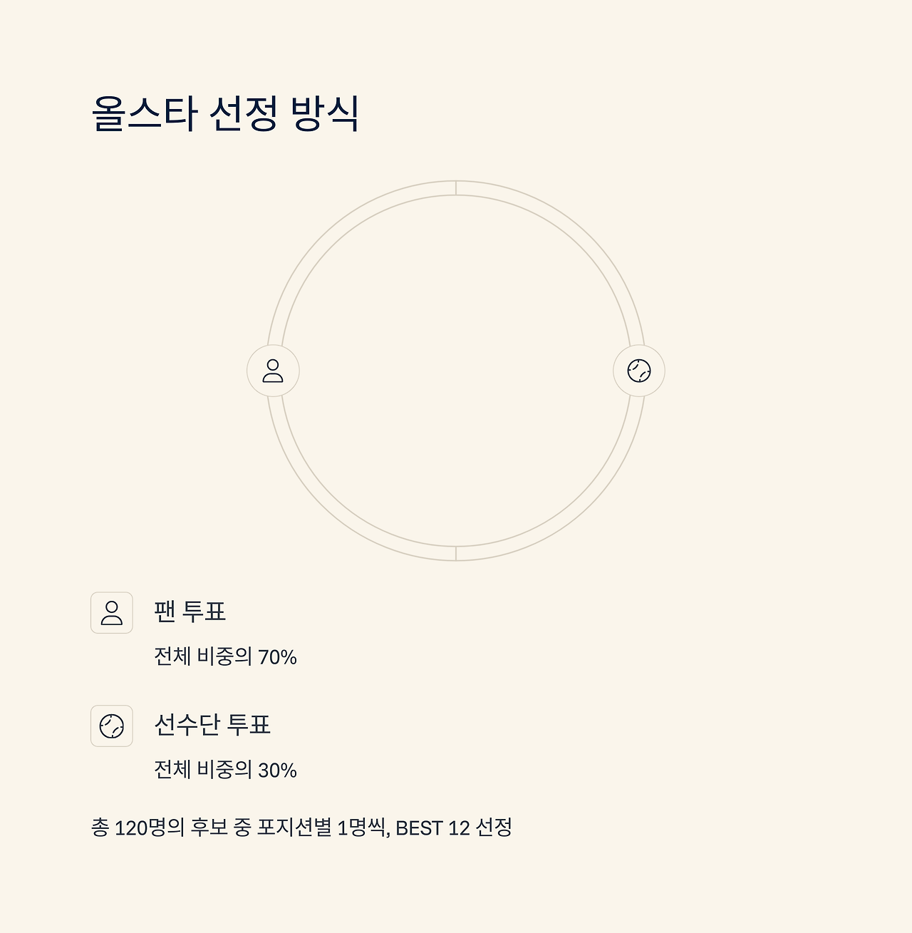 - 팬 투표 70% + 선수단 투표 30%