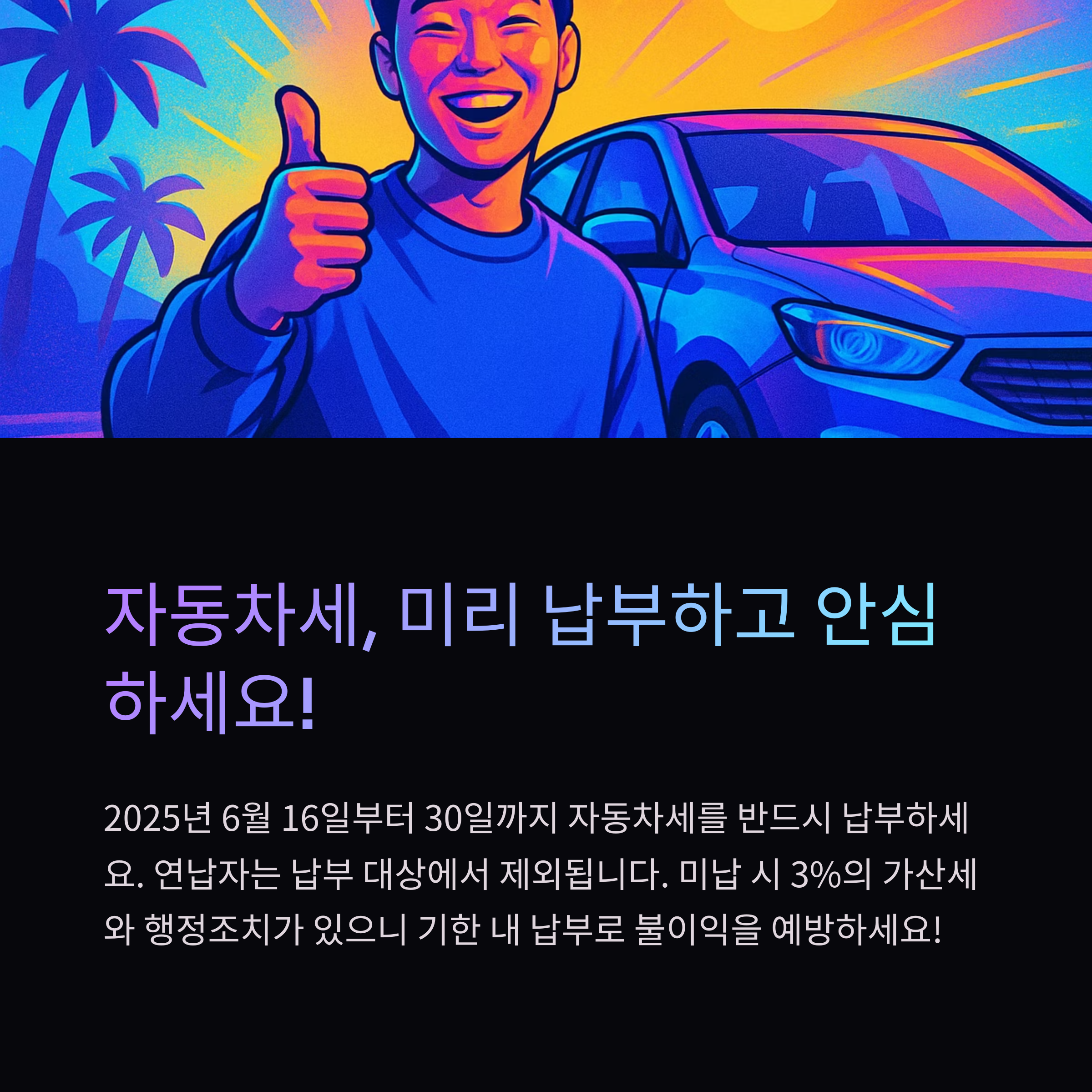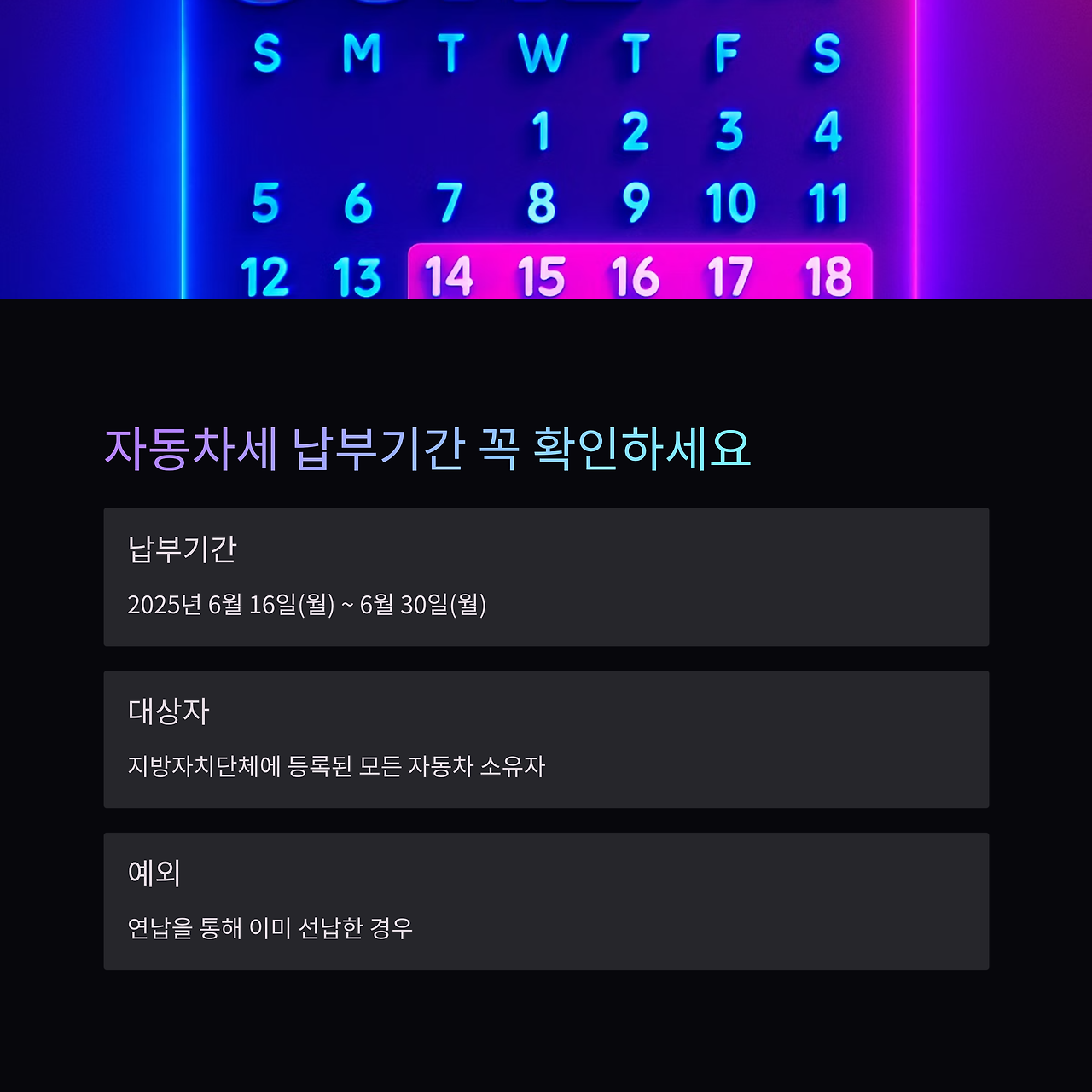 2025년 6월 16일부터 6월 30일까지, 자동차세를 반드시 납부해야 합니다.