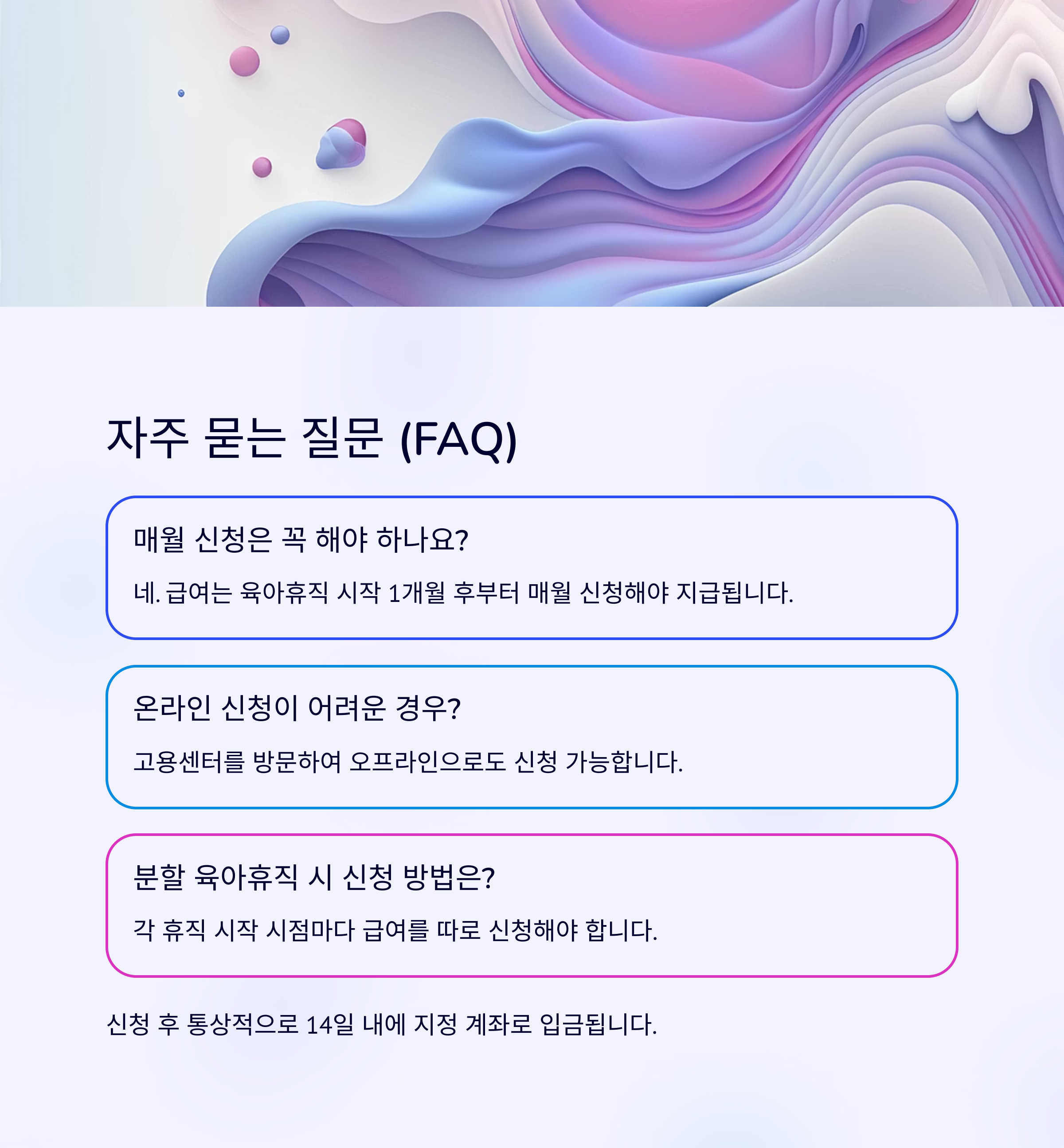 Q1. 육아휴직급여 신청방법 중 매월 신청은 꼭 해야 하나요?