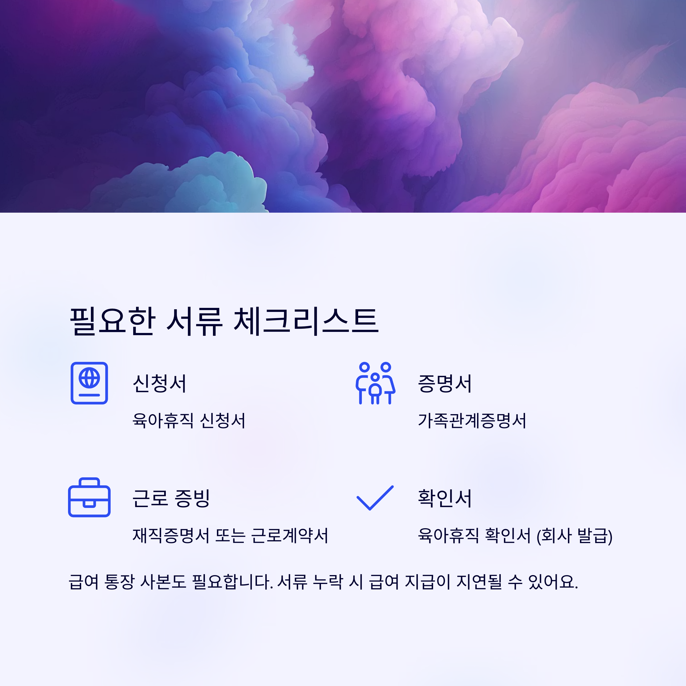 육아휴직급여 신청방법에서 가장 자주 생기는 문제가 서류 누락입니다.