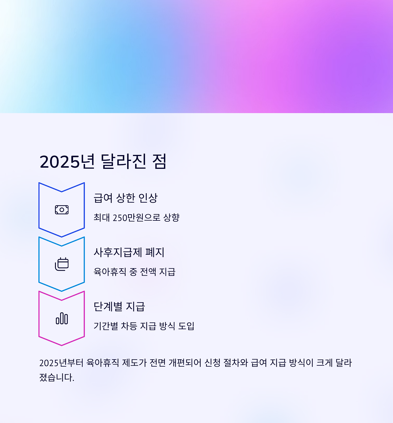 2025년부터는 육아휴직 제도의 전면 개편으로, 신청 절차와 급여 지급 방식도 크게 달라졌습니다.