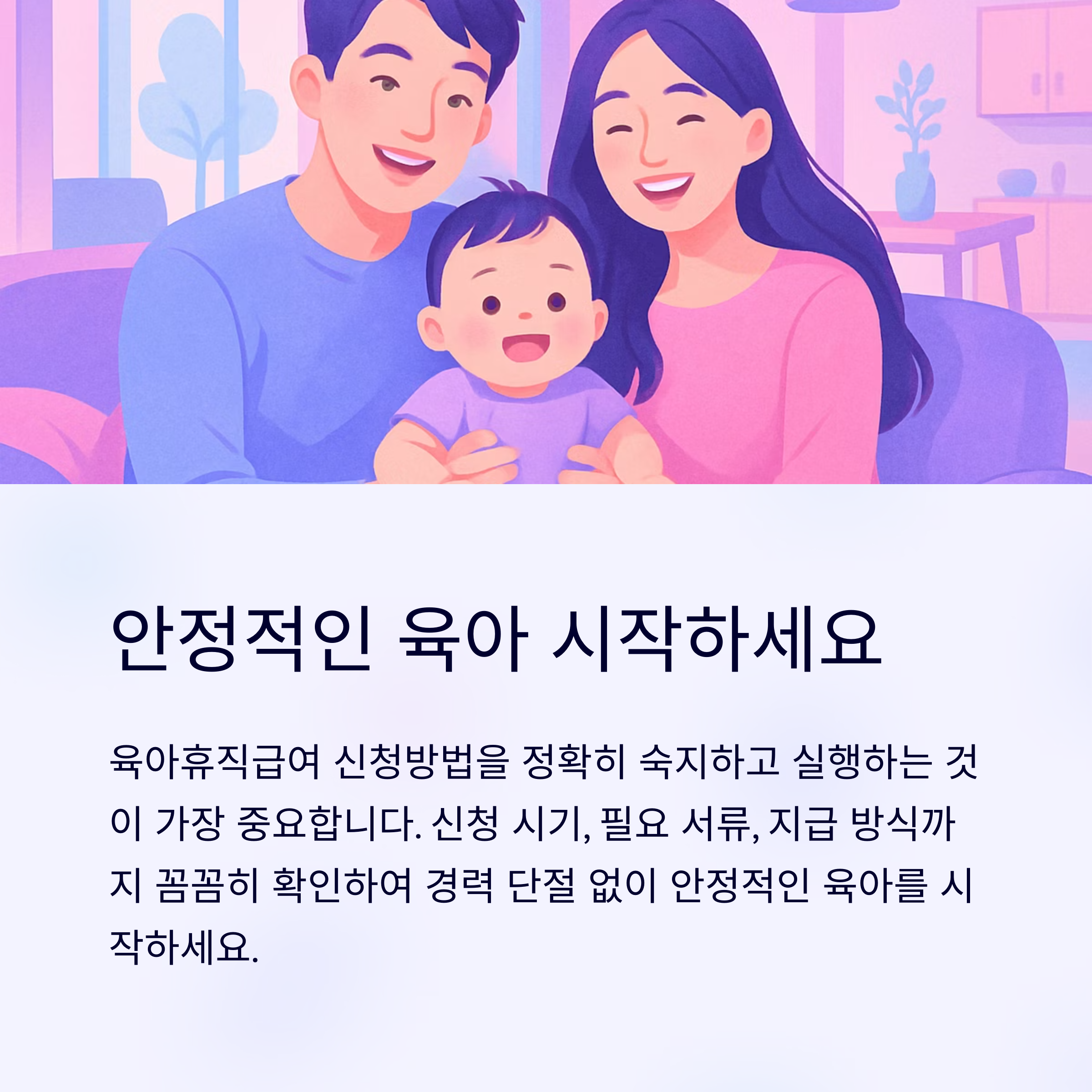 신청 시기, 필요 서류, 지급 방식까지 꼼꼼히 확인하여 경력 단절 없이 안정적인 육아를 시작해보세요.
