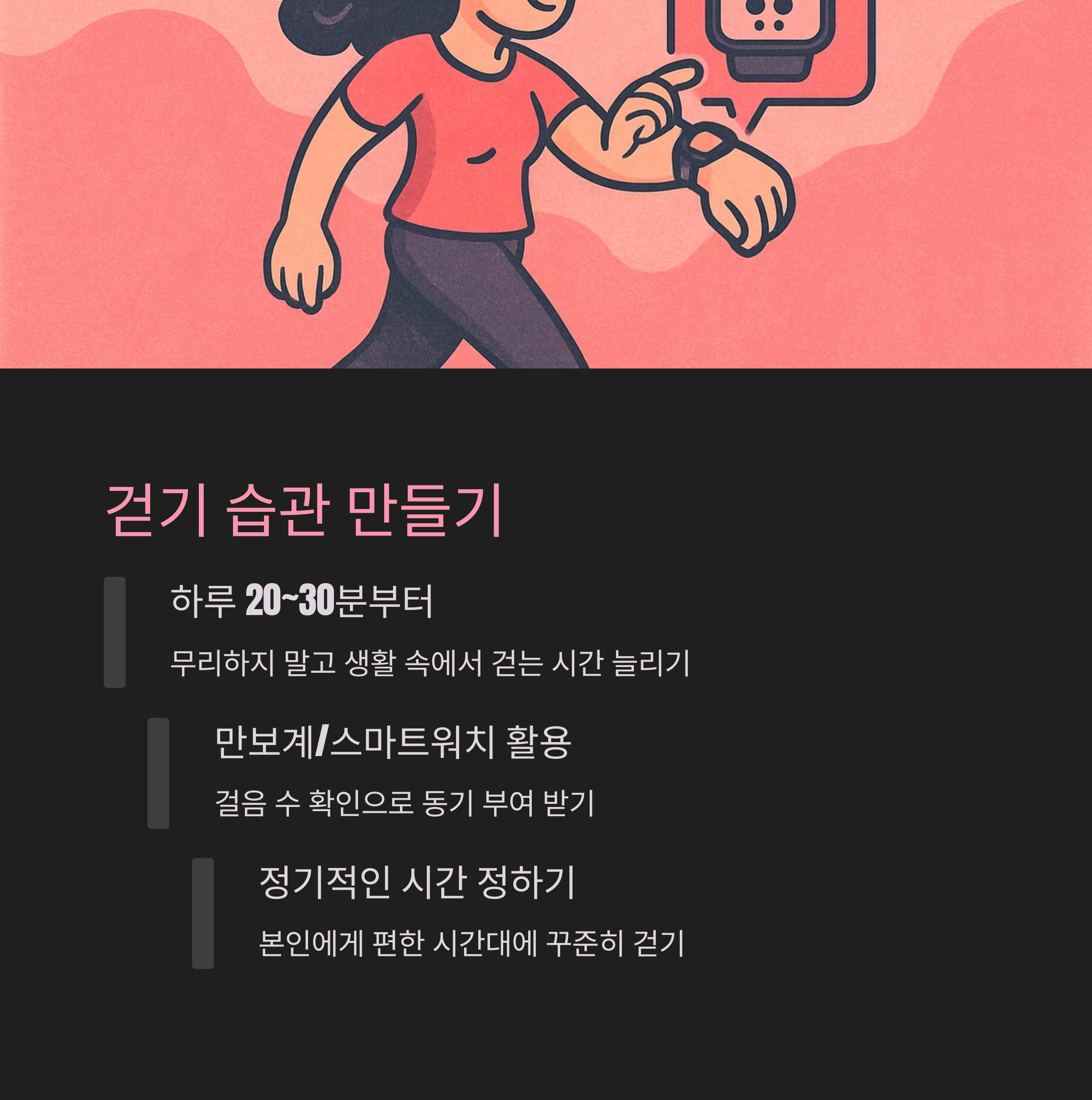 마무리 : 걷기는 가장 간단하지만 강력한 건강 습관입니다