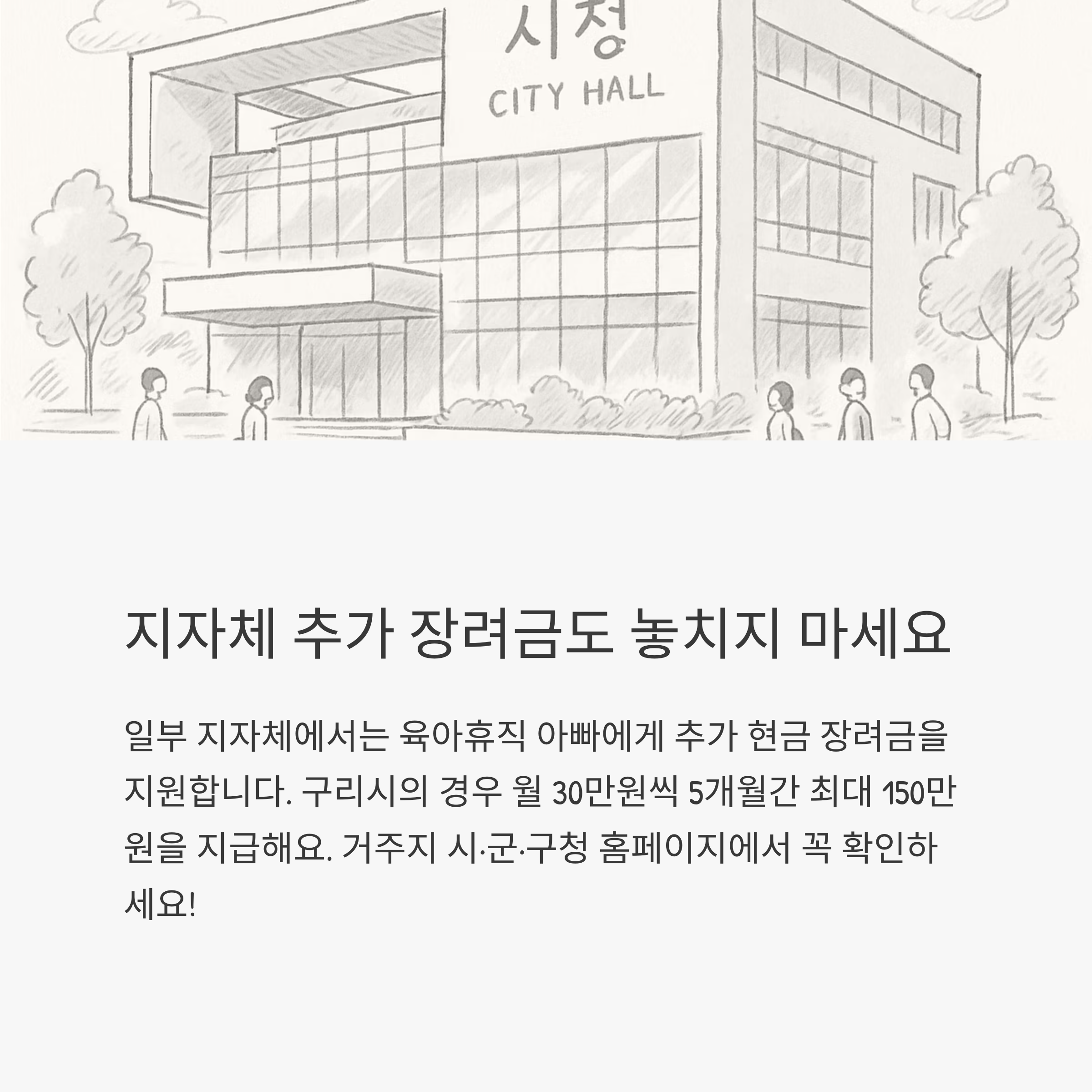 정확한 신청 시기와 절차, 지자체별 추가 혜택까지 꼼꼼히 확인해, 일과 육아의 균형을 적극적으로 실천해보세요.