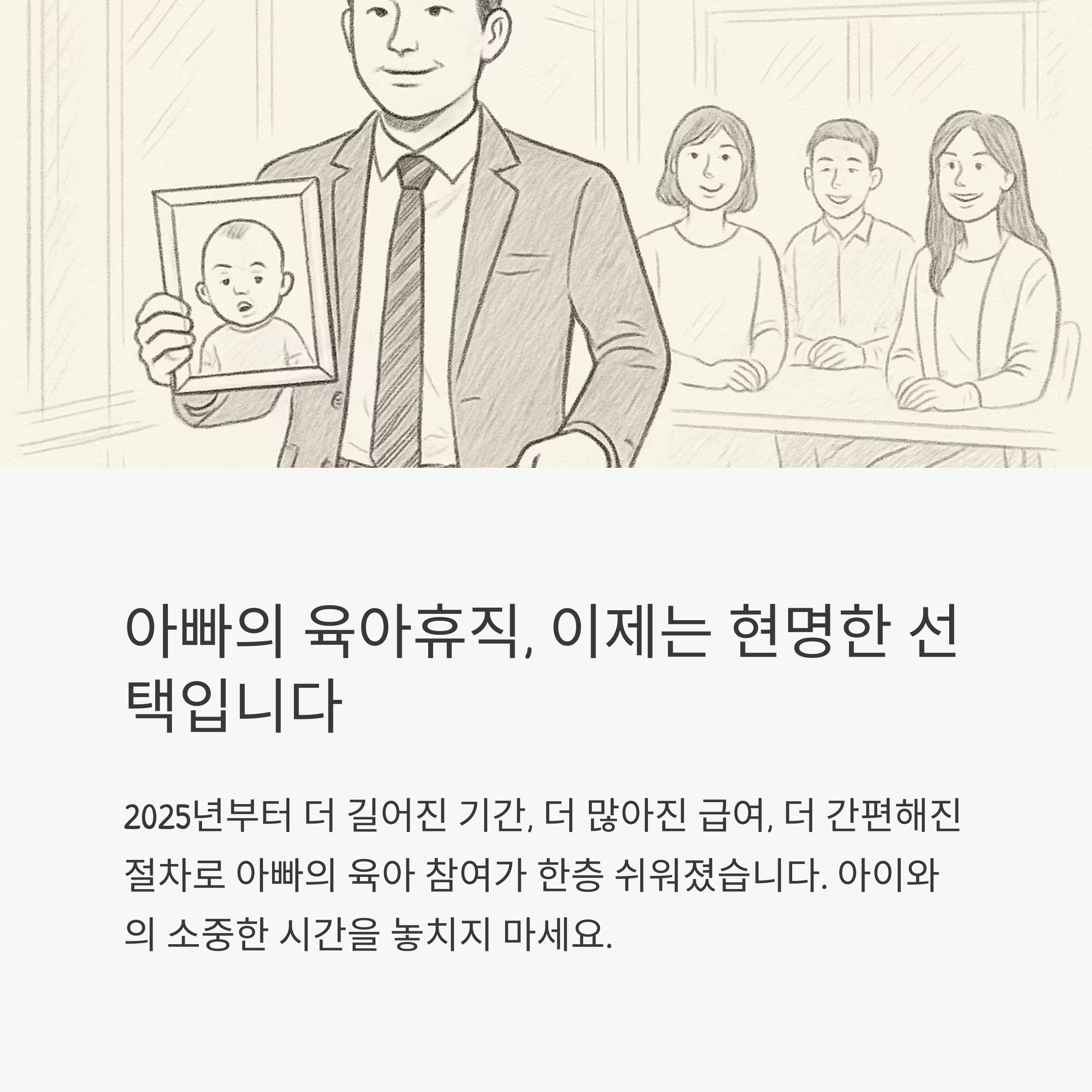 2025년부터 아빠 육아휴직은 기간, 급여, 신청 절차 모두 대폭 개선되어, 경제적 부담 없이 가족과 함께하는 시간이 더욱 길어집니다.