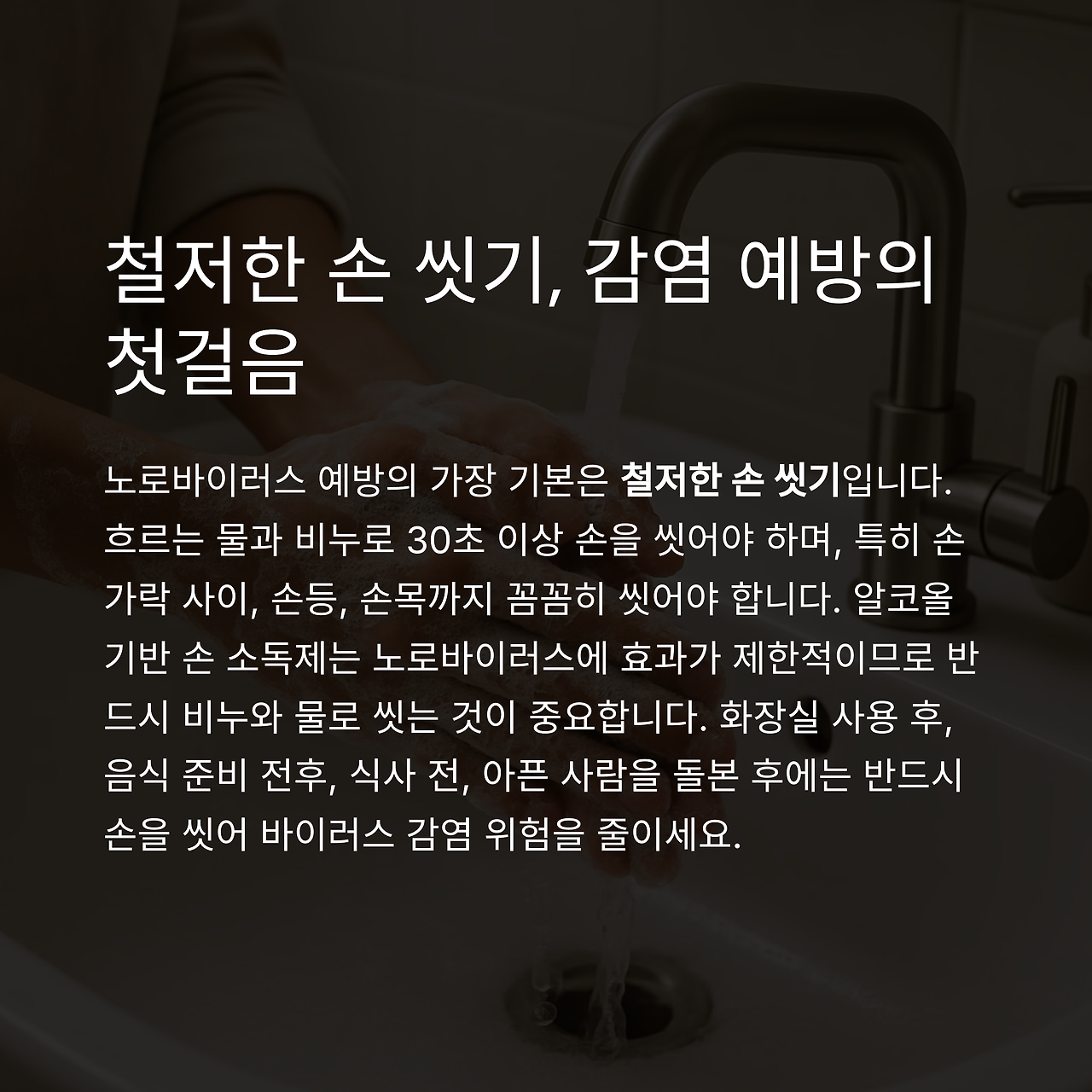 건강한 생활습관과 위생 수칙 실천으로 노로바이러스를 예방하세요.