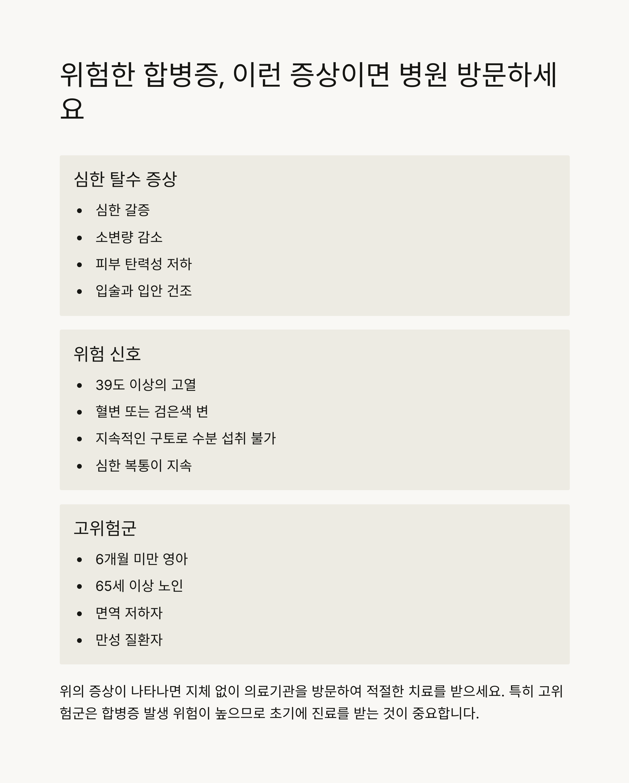 - 탈수, 전해질 불균형 주의