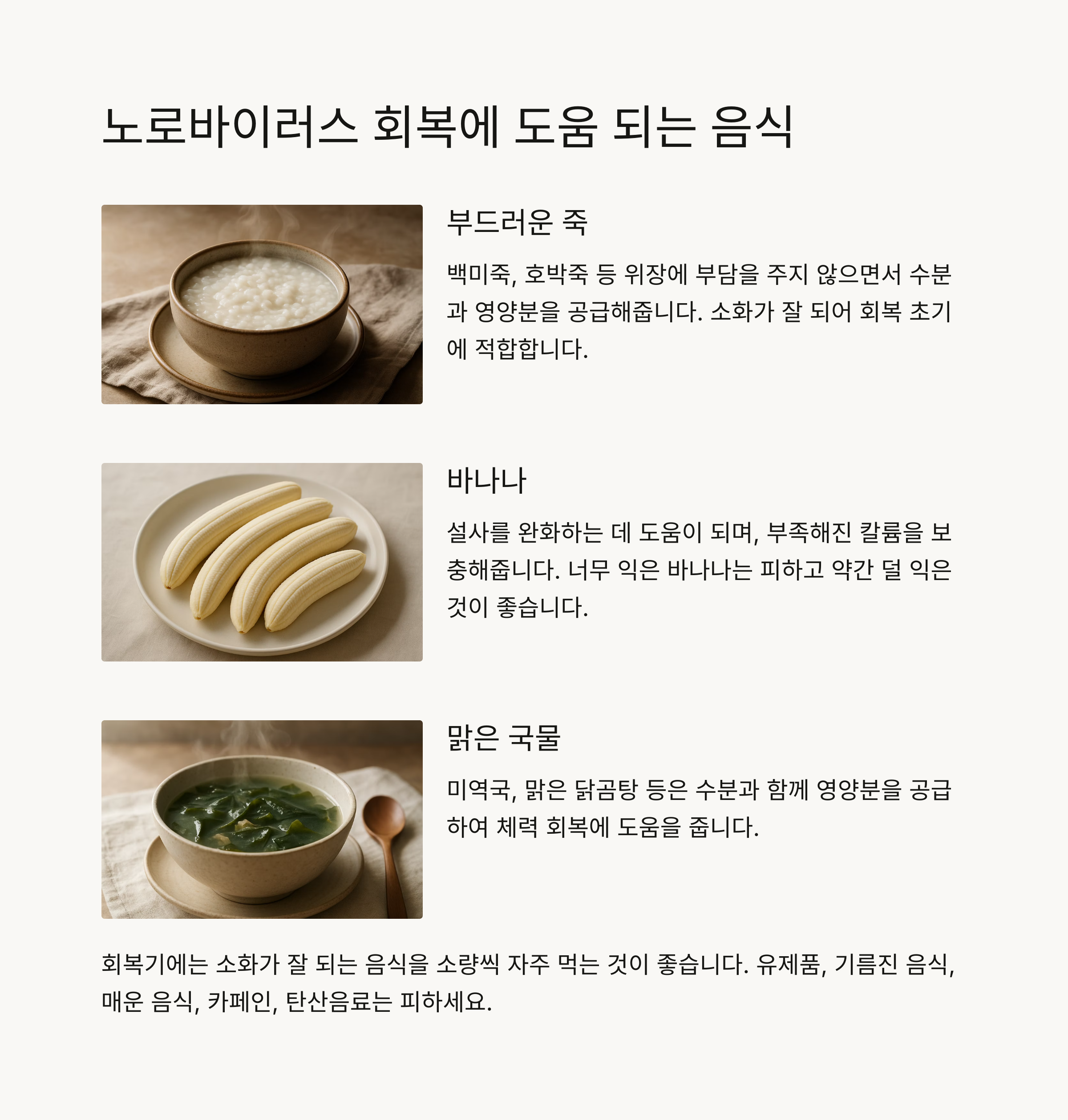 노로바이러스 회복에 좋은 음식