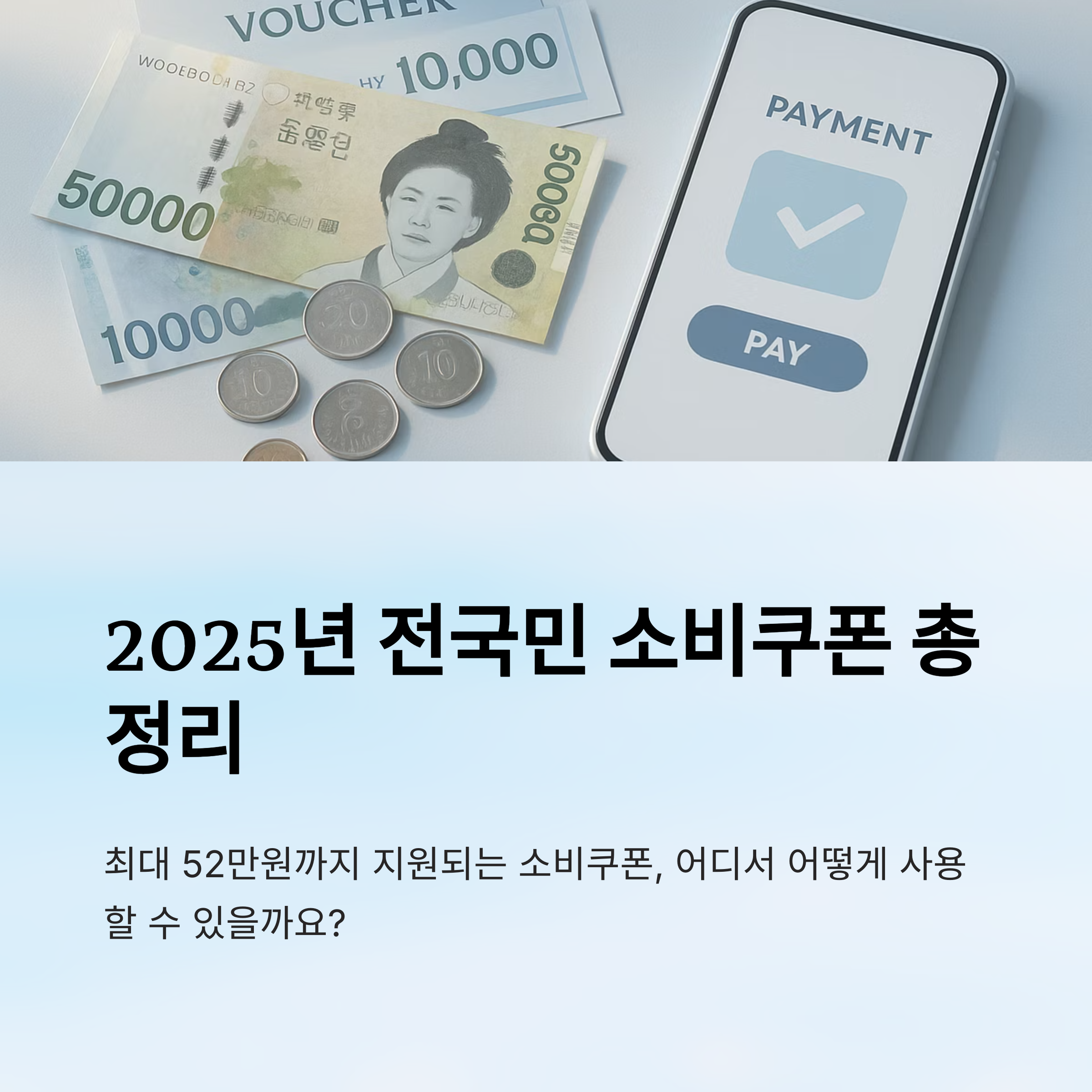 2025년 여름, 전국민에게 지급되는 소비쿠폰 제도가 시행됩니다. 정부는 물가 부담을 줄이고 지역경제를 살리기 위해 최대 52만 원까지 지원하는 '전국민 소비쿠폰'을 마련했습니다. 이 글에서는 전국민 소비쿠폰 사용처를 중심으로 실제 어디서 어떻게 사용할 수 있는지를 집중 정리합니다.