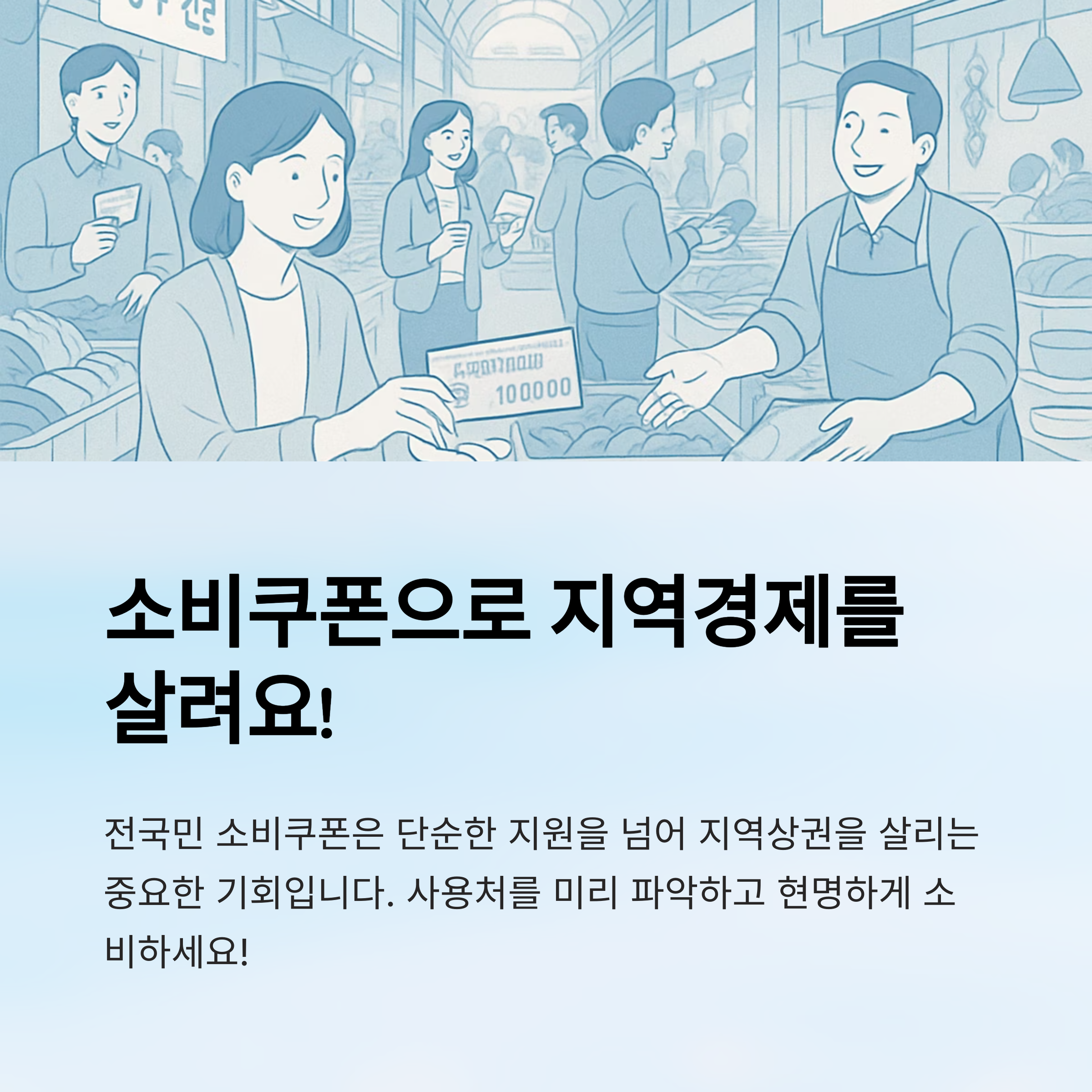 전국민 소비쿠폰 사용처에 대한 정확한 정보는 혜택을 제대로 누리기 위한 핵심입니다. 사용 가능 가맹점을 사전에 파악하고, 소비 계획을 세워 알뜰하고 현명한 소비로 연결하시기 바랍니다. 이번 전국민 소비쿠폰은 단순한 지원을 넘어 지역상권을 살리는 중요한 기회가 될 것입니다.