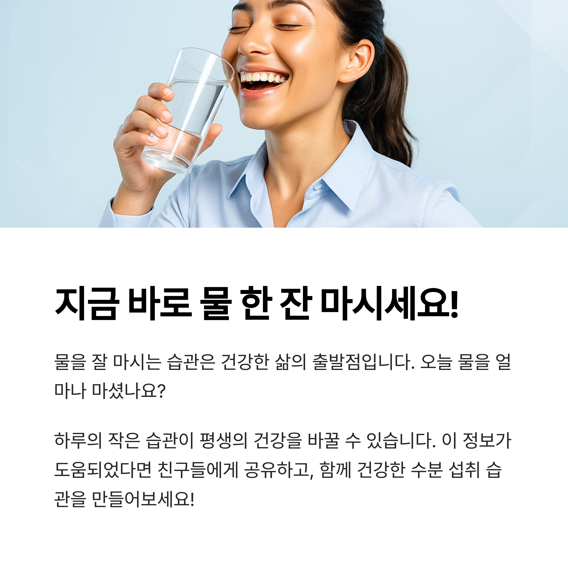 물을 잘 마시는 습관은 건강한 삶의 출발점입니다. 지금 이 글을 읽고 계신 당신, 혹시 오늘 물을 얼마나 마셨는지 기억나시나요? 하루의 작은 습관이 평생의 건강을 바꿀 수 있습니다. 지금 당장 책상 위에 물 한 잔을 올려두는 것으로 시작해보세요.