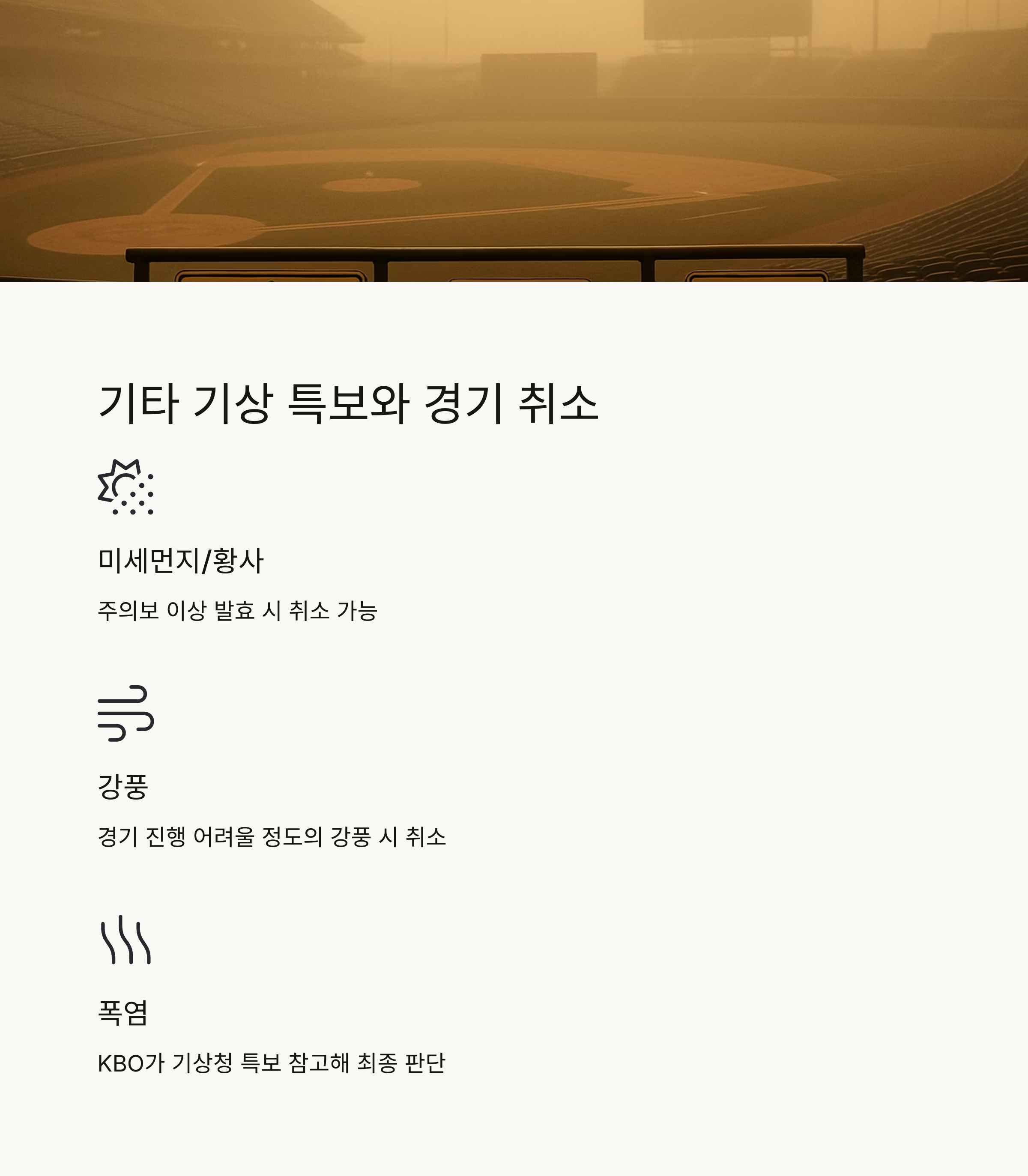 - KBO가 기상청 특보를 참고해 취소 여부 최종 판단
