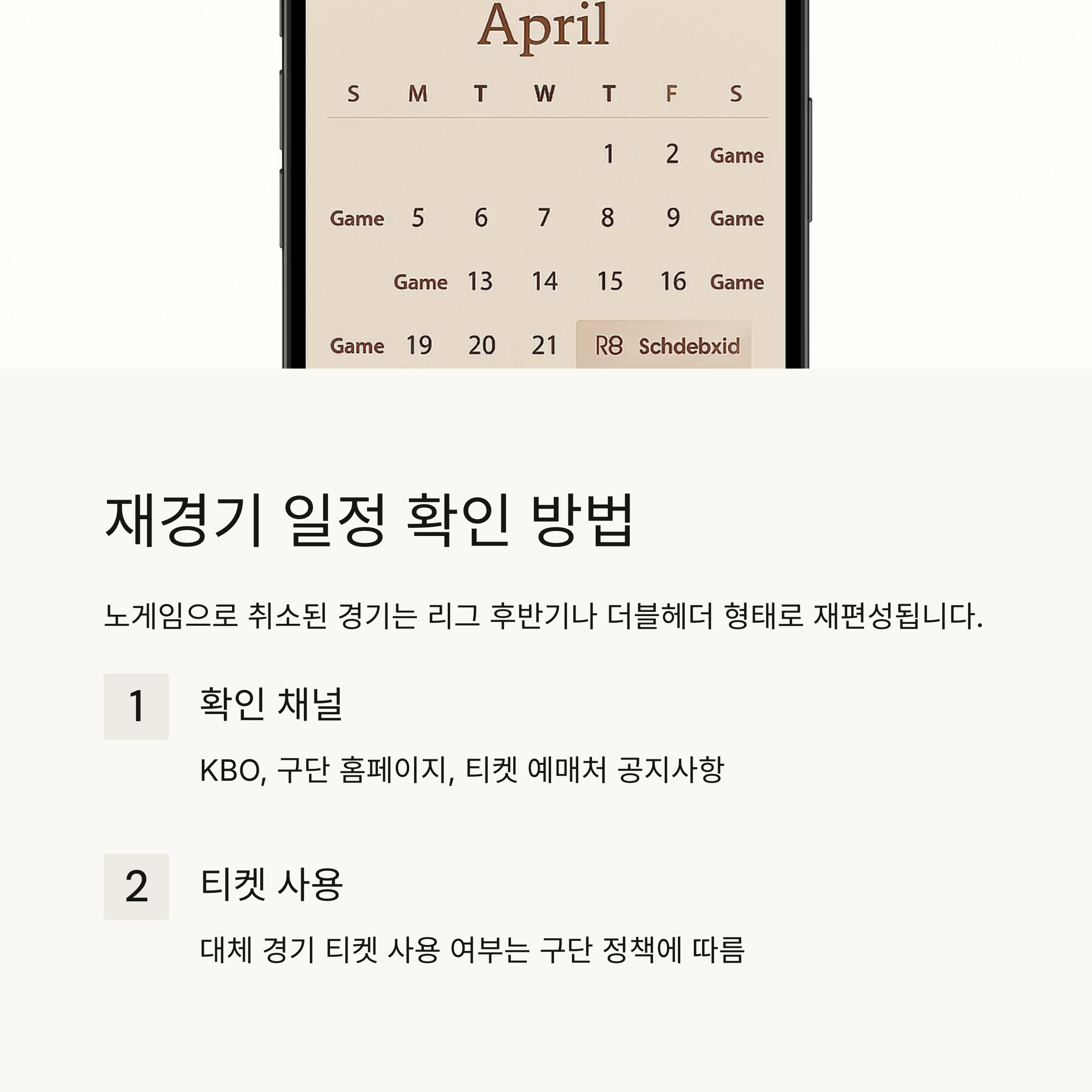 - 확인 채널: KBO, 구단 홈페이지, 티켓 예매처 공지사항